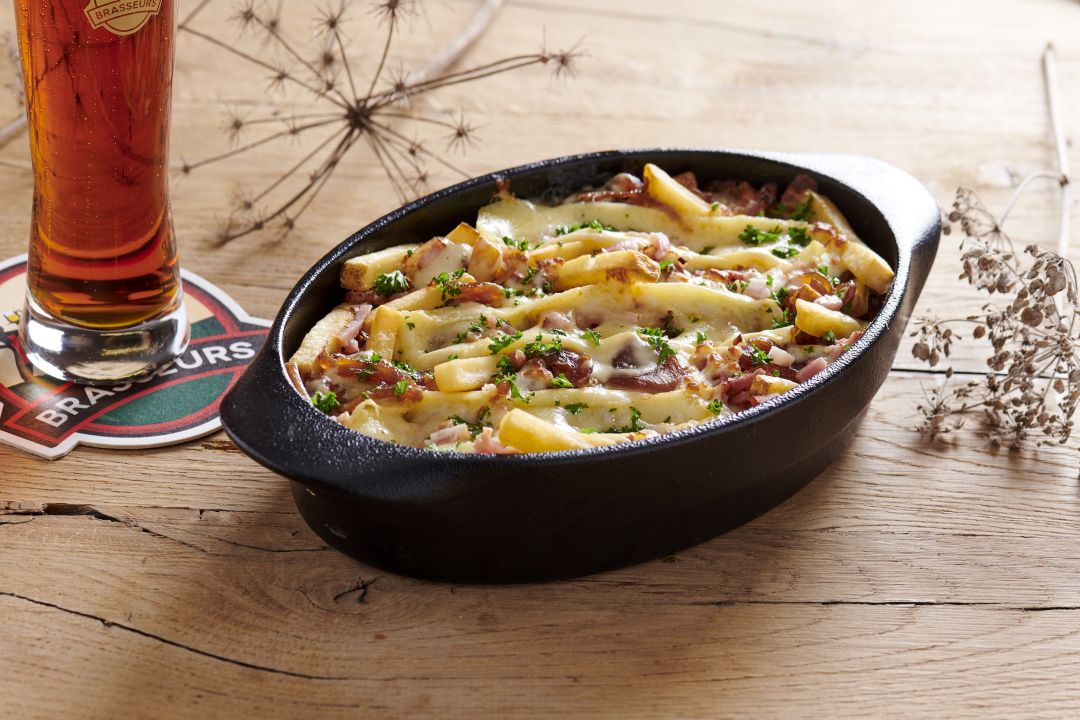 Nice place with an outside terrace and parking. The menu has many local and french specialities such as flammekueche, Andouillette, and poutines. Also, they have usual bar foods including very good quality burgers. The best thing you can have in here is their own beers. I loved the porter and the IPA. They also have special or new beers time to time. Definitely worth a visit!