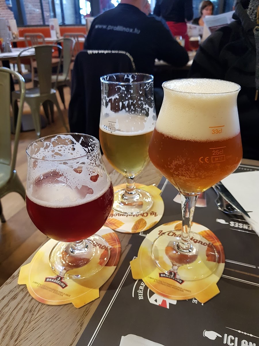 Entering 3 Brasseurs Terville, you are greeted by a warm atmosphere complemented by friendly, attentive staff. The decor is charmingly patriotic, creating an inviting backdrop for your dining experience, especially during major sporting events. Guests appreciate the spacious dining area, which caters not only to individuals but also families, and even their furry companions, making it a highly dog-friendly venue. Cleanliness and accessibility add to the appeal, with ample parking available nearby.
